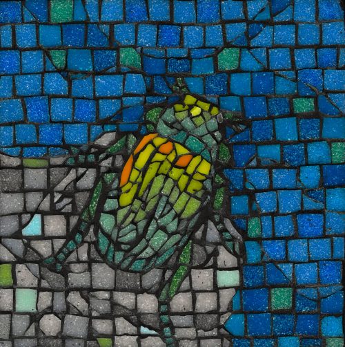 Dante Kobie Coetzee, Diphucephala 3, 2024, mosaic on ply. Courtesy of the artist.