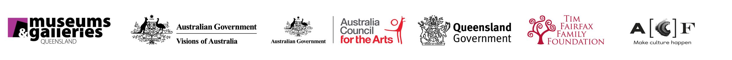 Three echoes – Western Desert art is an initiative of Museums & Galleries Queensland developed in partnership with Karin Schack and Andrew Arnott, and curated by Djon Mundine OAM FAHA. This project has been assisted by the Australian Government through its Visions of Australia program and through the Australia Council, its arts funding and advisory body. It is supported by the Queensland Government through Arts Queensland.