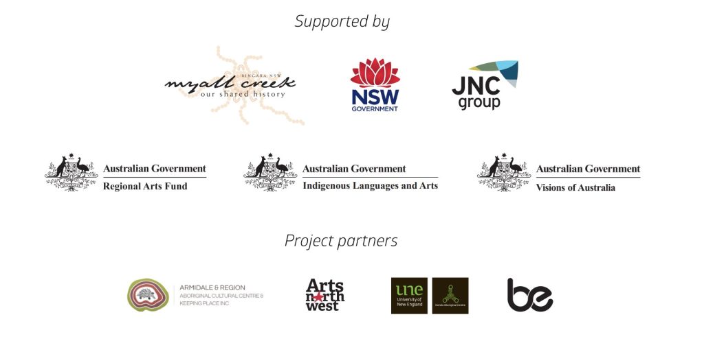 Myall Creek and beyond, produced in partnership with the Friends of Myall Creek Memorial, is an exhibition of newly commissioned works by a group of leading contemporary indigenous artists. The artists worked with local communities to create new work to explore the issues and complexities of the Myall Creek Massacre and its aftermath. The exhibition explores this difficult shared history to increase awareness and considered discourse about these events and their continued impact on both Aboriginal and non-Aboriginal people.