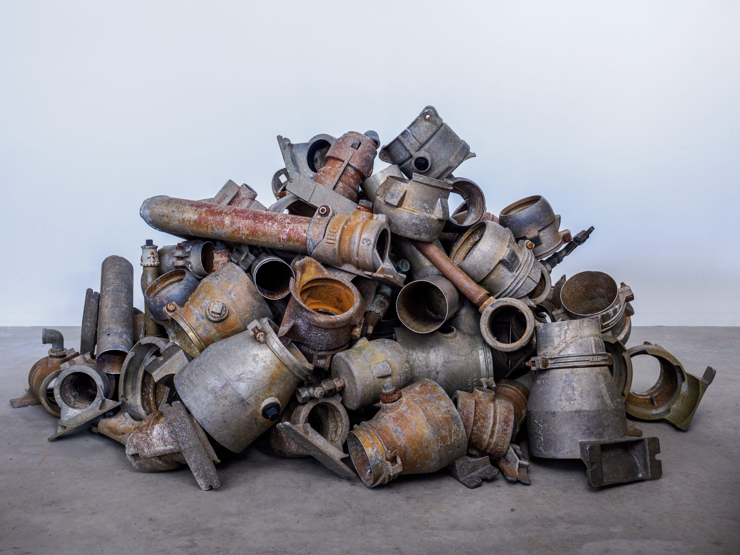 Jill Sampson,ism, 2025, agricultural irrigation fittings. Photograph courtesy of Malcolm Paterson.