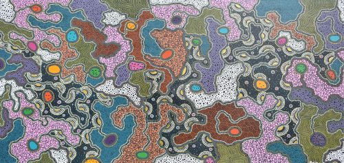 Three echoes – Western Desert art is a stunning exhibition exploring the poetic notion of echoes – how metaphorically and metaphonically we can echo a thought, a sentiment or a consciousness. In the 1970s, Australian Aboriginal people from the desert began talking to the world through art, transferring their creation stories of the land and people to canvas. Now in the 2020s, this foundational echo is going back and forth. No longer a one-sided, outward calling, it reverberates multi-dimensionally within wider Australian and global communities.